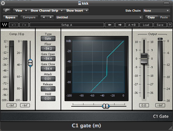 เมื่อได้เสียงตามที่ต้องการแล้ว ผมก็ตัด Gate เพื่อเอาเสียง Snare ออกอย่างที่ได้กล่าวไว้แล้วข้างต้นครับ ดังตัวอย่างรูปในด้านล่าง แต่สิ่งที่ได้มาเพิ่มเติมด้วยก็คือความคมชัดของ kick ที่มากขึ้นเพราะว่าผมควบคุมหางของ kick ไปด้วยในเวลาเดียวกัน นี่ก็ถือเป็นอันจบแล้วครับ สำหรับ track kick